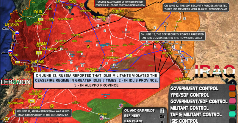 On June 13, Russia reported that Idlib militants violated the ceasefire regime in Greater Idlib 7 times: 2 – in…
