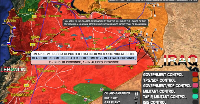 On April 21, Russia reported that Idlib militants violated the ceasefire regime in Greater Idlib 5 times: 2 – in…