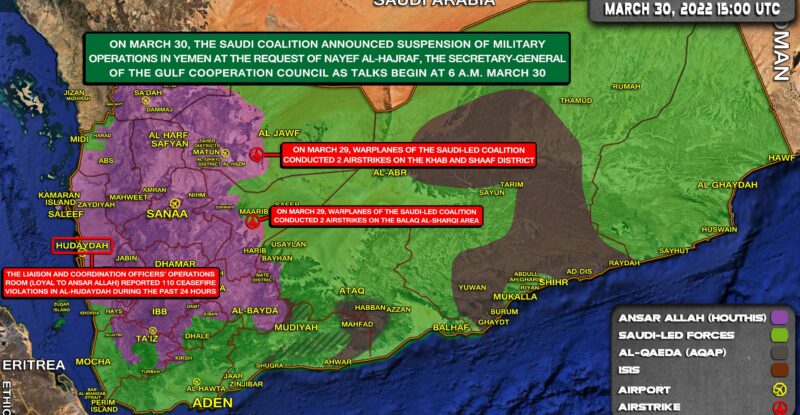 The Liaison and Coordination Officers’ Operations Room (loyal to Ansar Allah) reported 110 ceasefire violations in al-Hudaydah in the past…