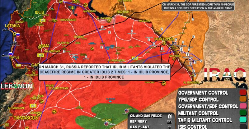 On March 31, Russia reported that Idlib militants violated the ceasefire regime in Greater Idlib 2 times: 1 – in…