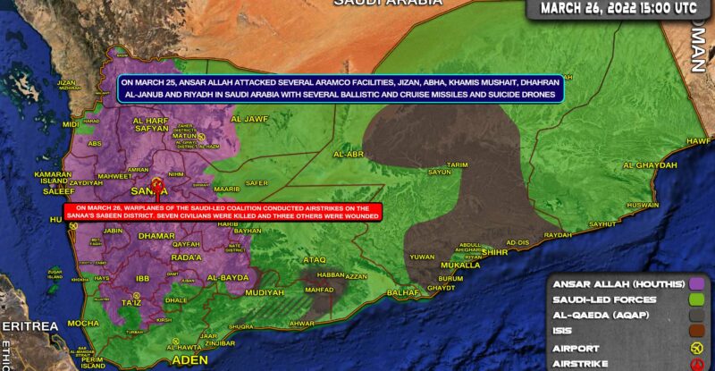 On March 25, Ansar Allah attacked several Aramco facilities, Jizan, Abha, Khamis Mushait, Dhahran Al-Janub and Riyadh in Saudi Arabia…