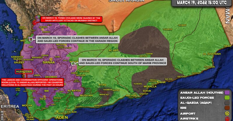 The Liaison and Coordination Officers’ Operations Room (loyal to Ansar Allah) reported 148 ceasefire violations in al-Hudaydah in the past…