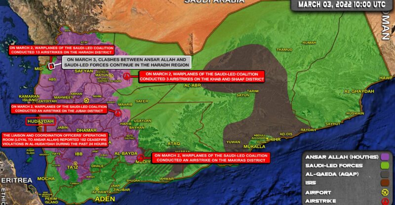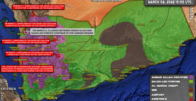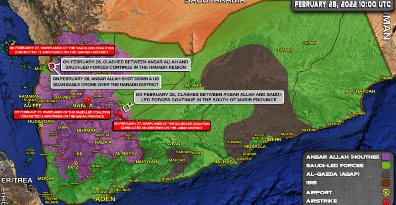 On February 27, warplanes of the Saudi-led coalition conducted 12 airstrikes on the Haradh district; On February 27, warplanes of…