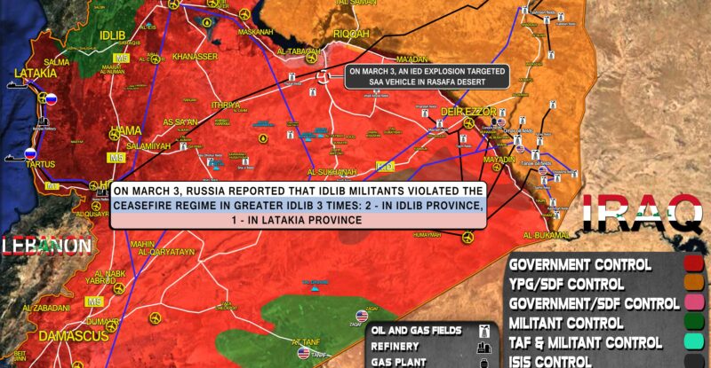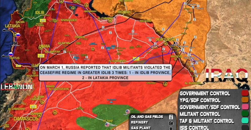 On March 1, Russia reported that Idlib militants violated the ceasefire regime in Greater Idlib 3 times: 1 – in…