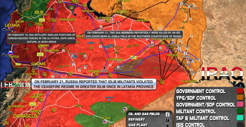 On February 21, Russia reported that Idlib militants violated the ceasefire regime in Greater Idlib once in Latakia province; On…