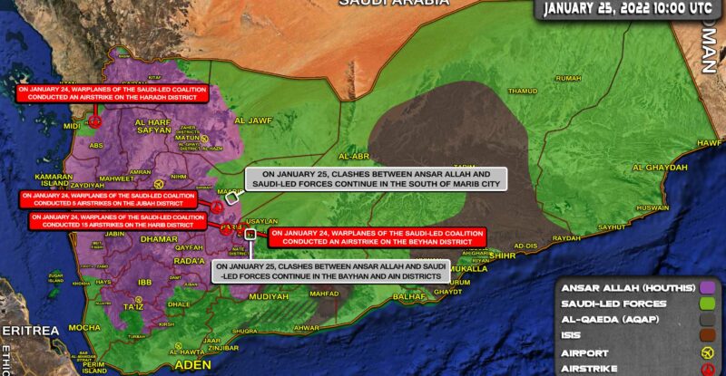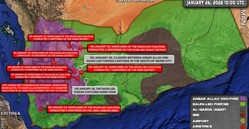 On January 24, warplanes of the Saudi-led coalition conducted 15 airstrikes on the Harib district; On January 24, warplanes of…