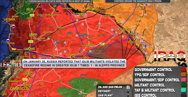 On January 26, Russia reported that Idlib militants violated the ceasefire regime in Greater Idlib once in Aleppo province; On…