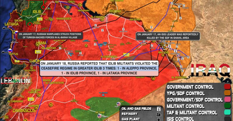 On January 17, Russia reported that Idlib militants violated the ceasefire regime in Greater Idlib once in Aleppo province; On…