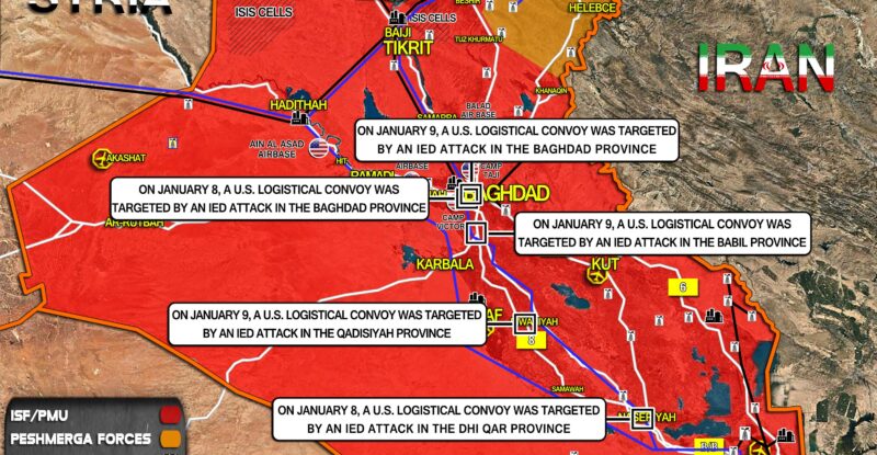 On January 9, a U.S. logistical convoy was targeted by an IED attack in the Babil province; On January 9,…