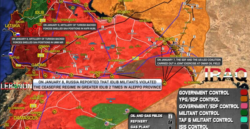On January 8, Russia reported that Idlib militants violated the ceasefire regime in Greater Idlib 2 times in Aleppo province;…