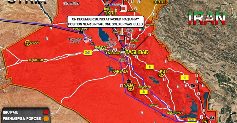 On December 28, ISIS attacked Iraqi Army position near Siniyah. One soldier was killed; On December 28, four ISIS terrorists…