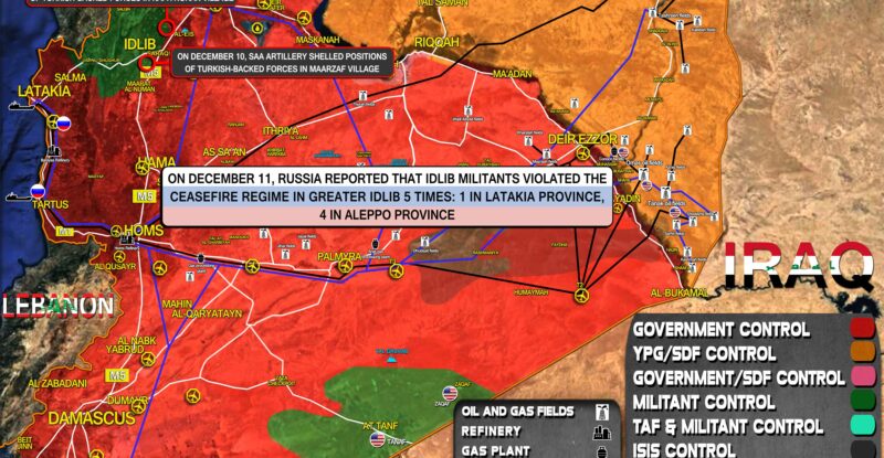 On December 11, Russia reported that Idlib militants violated the ceasefire regime in Greater Idlib 5 times: 1 in Latakia…