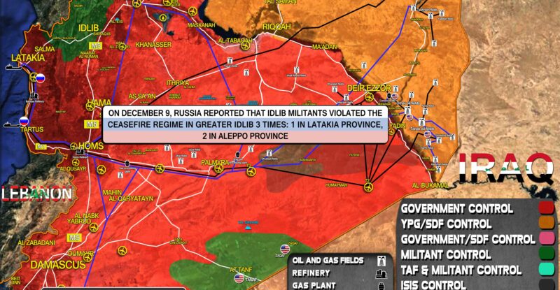 On December 9, Russia reported that Idlib militants violated the ceasefire regime in Greater Idlib 3 times: 1 in Latakia…