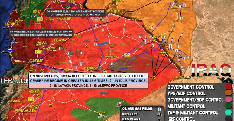 On November 25, Russia reported that Idlib militants violated the ceasefire regime in Greater Idlib 6 times: 2 – in…