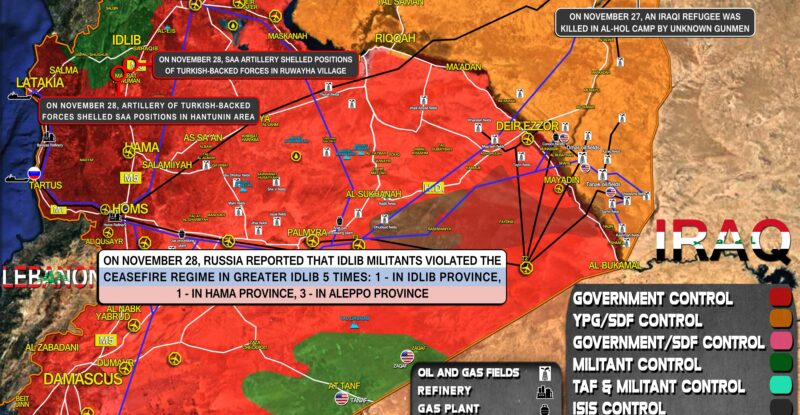 On November 28, Russia reported that Idlib militants violated the ceasefire regime in Greater Idlib 5 times: 1 – in…