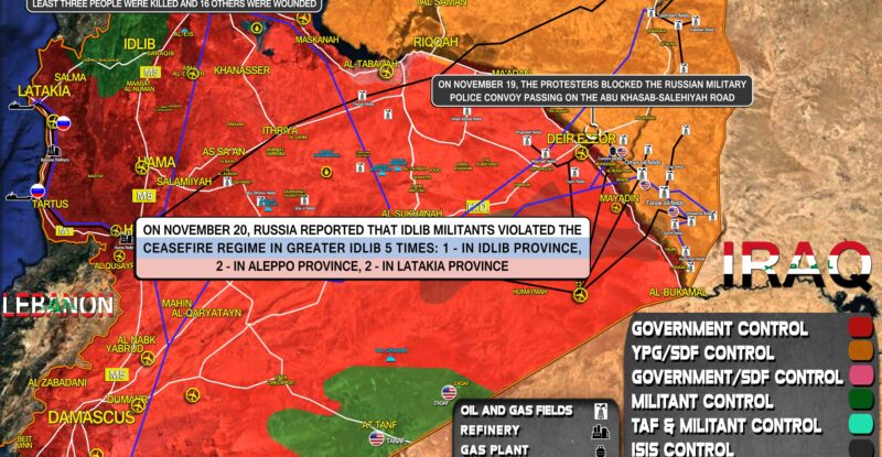 On November 20, Russia reported that Idlib militants violated the ceasefire regime in Greater Idlib 5 times: 1 – in…