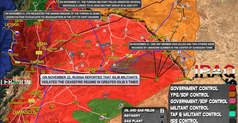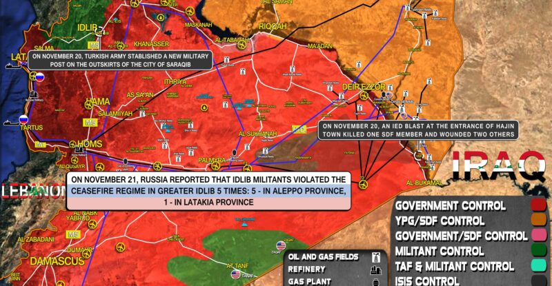 On November 22, Russia reported that Idlib militants violated the ceasefire regime in Greater Idlib 5 times; On November 21,…