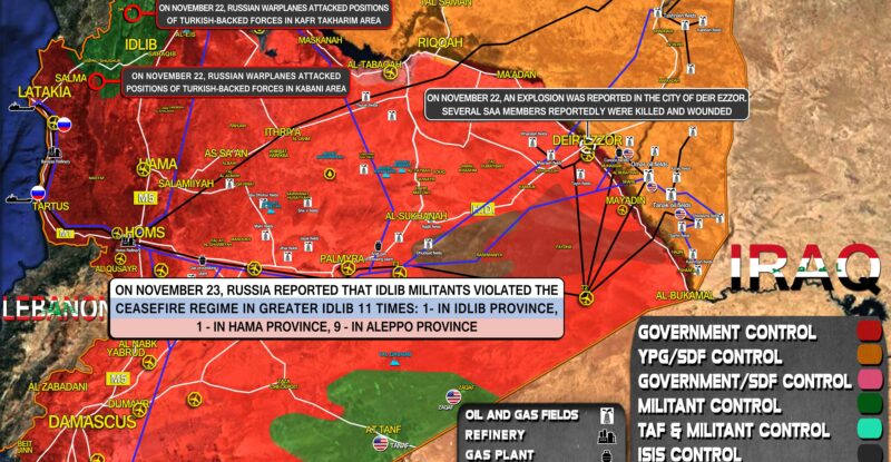 On November 23, Russia reported that Idlib militants violated the ceasefire regime in Greater Idlib 11 times: 1- in Idlib…
