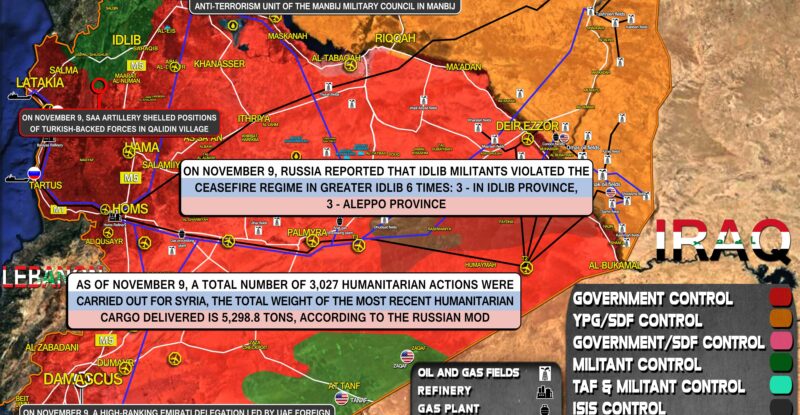 On November 9, Russia reported that Idlib militants violated the ceasefire regime in Greater Idlib 6 times: 3 – in…