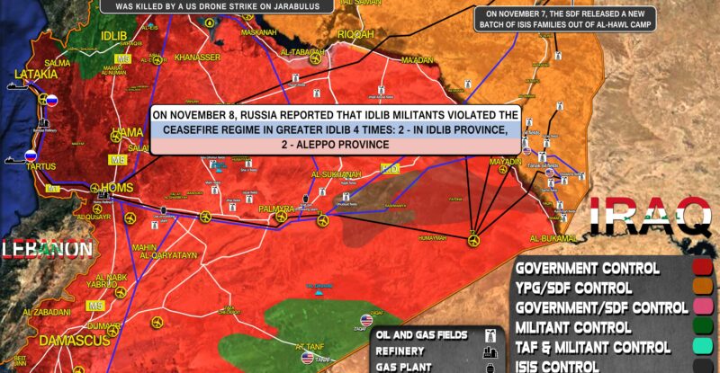 On November 8, Russia reported that Idlib militants violated the ceasefire regime in Greater Idlib 4 times: 2 – in…