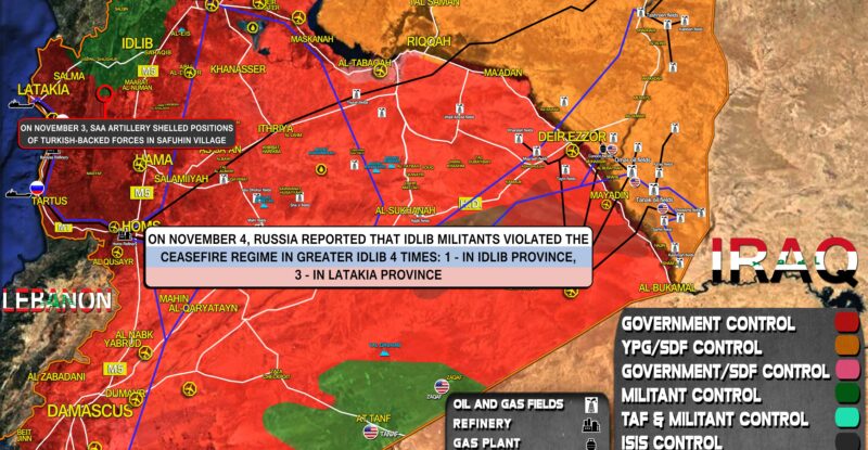 On November 4, Russia reported that Idlib militants violated the ceasefire regime in Greater Idlib 4 times: 1 – in…