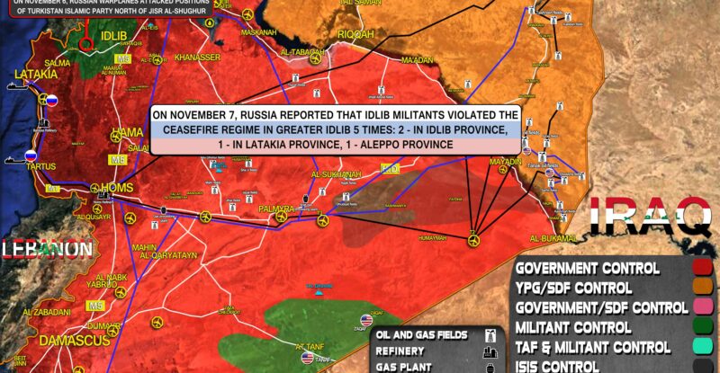 On November 7, Russia reported that Idlib militants violated the ceasefire regime in Greater Idlib 5 times: 2 – in…