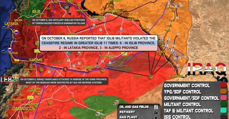On October 8, Russia reported that Idlib militants violated the ceasefire regime in Greater Idlib 11 times: 6 – in…