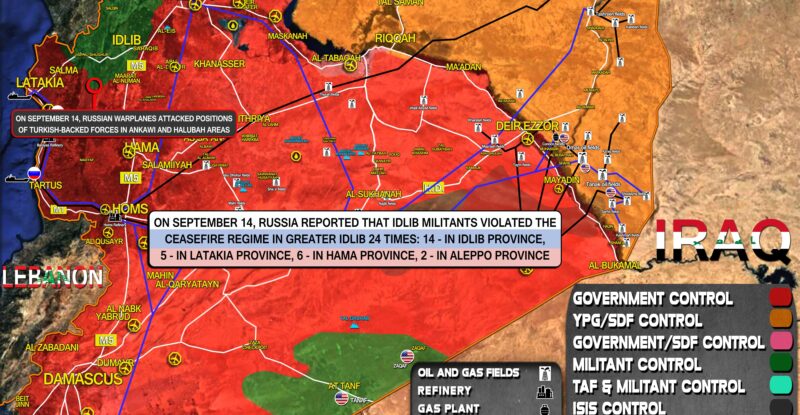 On September 14, Russia reported that Idlib militants violated the ceasefire regime in Greater Idlib 24 times: 14 – in…