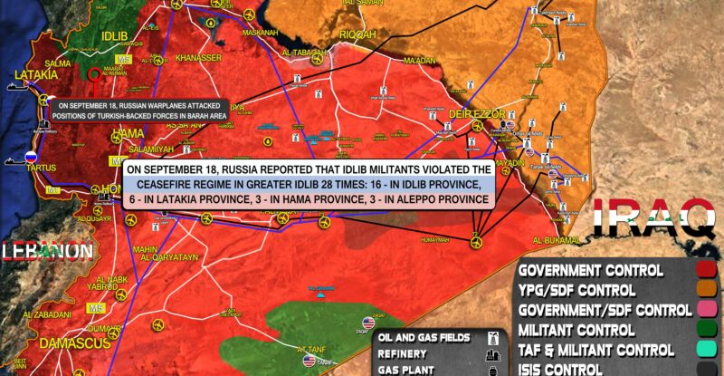 On September 18, Russia reported that Idlib militants violated the ceasefire regime in Greater Idlib 28 times: 16 – in…