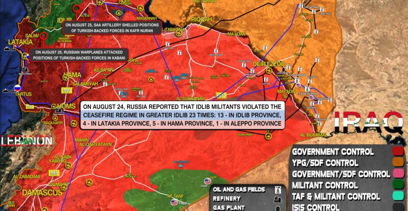 On August 24, Russia reported that Idlib militants violated the ceasefire regime in Greater Idlib 23 times: 13 – in…