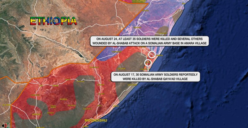 On August 17, 30 Somalian Army soldiers reportedly were killed by al-Shabab Qaya’ad village On August 24, at least 35…