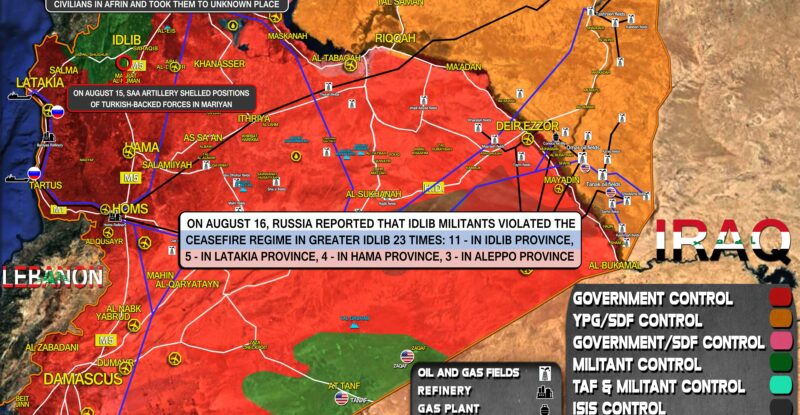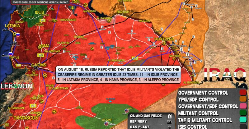 On August 16, Russia reported that Idlib militants violated the ceasefire regime in Greater Idlib 23 times: 11 – in…