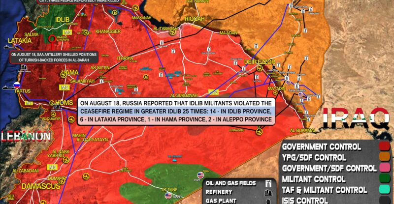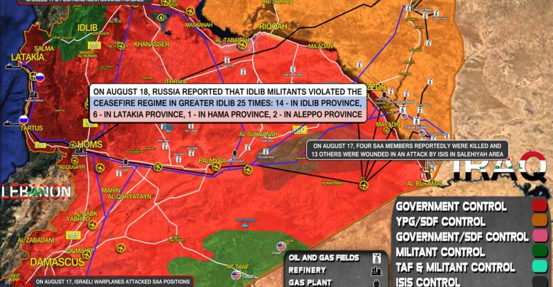 On August 18, Russia reported that Idlib militants violated the ceasefire regime in Greater Idlib 25 times: 14 – in…