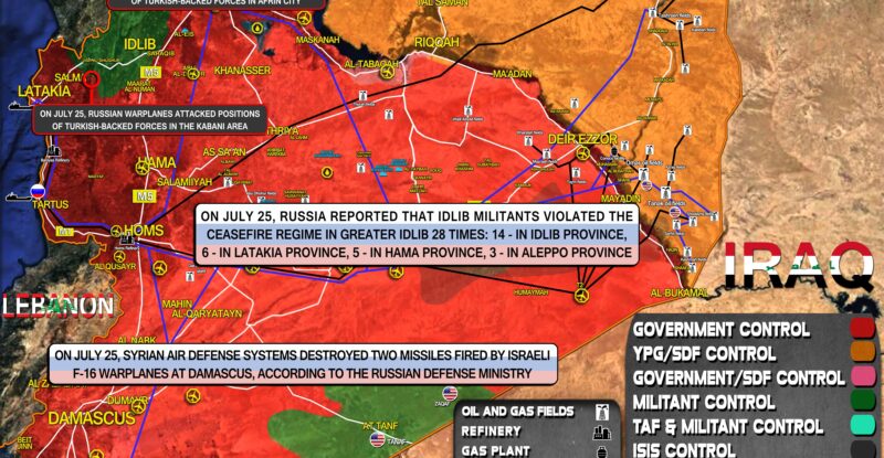 On July 25, Russia reported that Idlib militants violated the ceasefire regime in Greater Idlib 28 times: 14 – in…