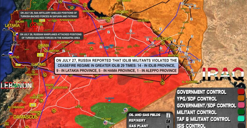 On July 27, Russia reported that Idlib militants violated the ceasefire regime in Greater Idlib 29 times: 14 – in…