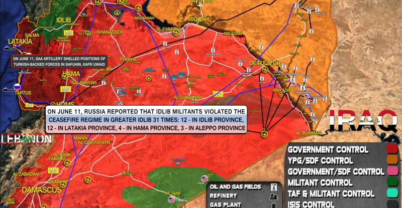 On June 11, Russia reported that Idlib militants violated the ceasefire regime in Greater Idlib 31 times: 12 – in…