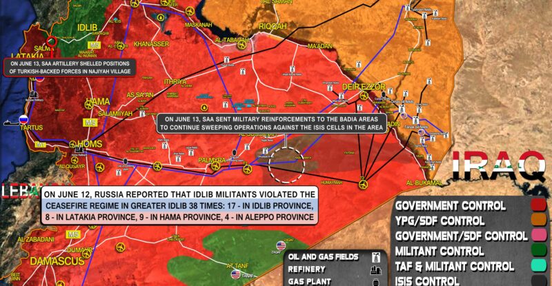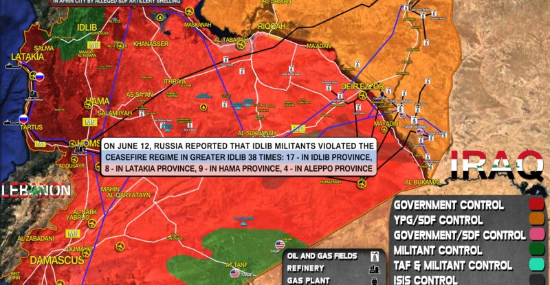 On June 12, Russia reported that Idlib militants violated the ceasefire regime in Greater Idlib 38 times: 17 – in…