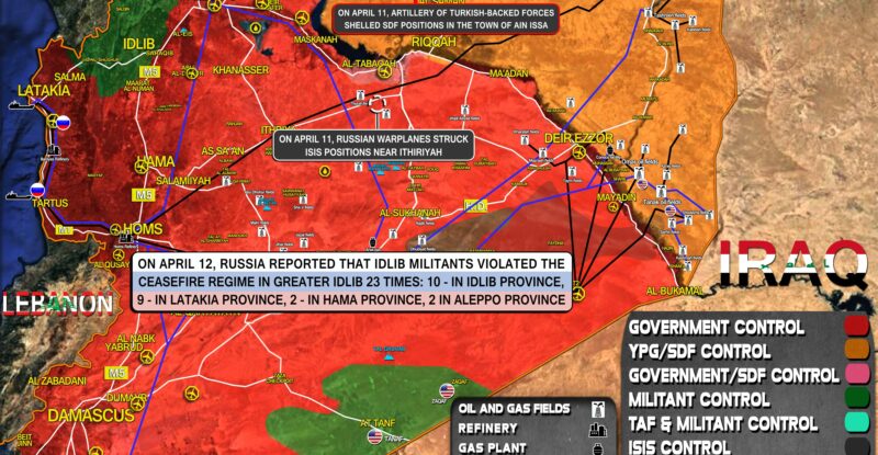 On April 12, Russia reported that Idlib militants violated the ceasefire regime in Greater Idlib 23 times: 10 – in…