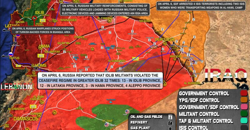 On April 6, Russia reported that Idlib militants violated the ceasefire regime in Greater Idlib 32 times: 13 – in…