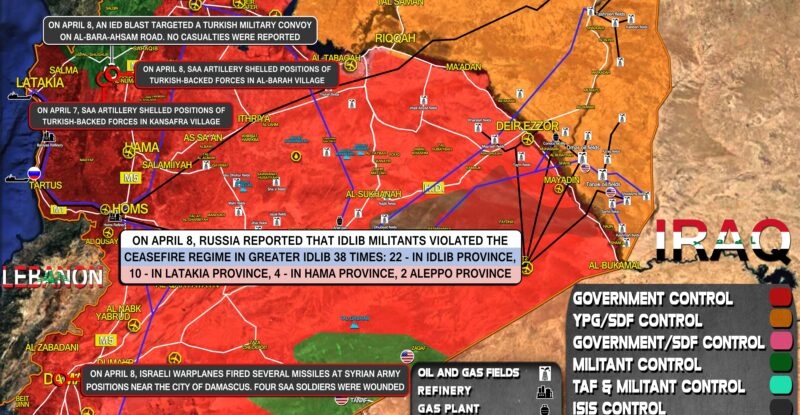 On April 8, Russia reported that Idlib militants violated the ceasefire regime in Greater Idlib 38 times: 22 – in…