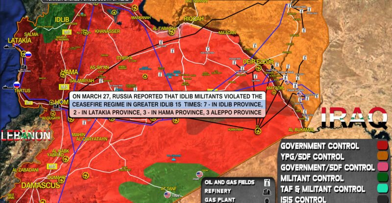 On March 27, Russia reported that Idlib militants violated the ceasefire regime in Greater Idlib 15 times: 7 – in…