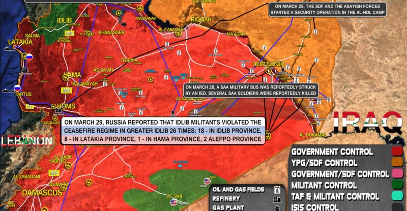 On March 29, Russia reported that Idlib militants violated the ceasefire regime in Greater Idlib 26 times: 18 – in…