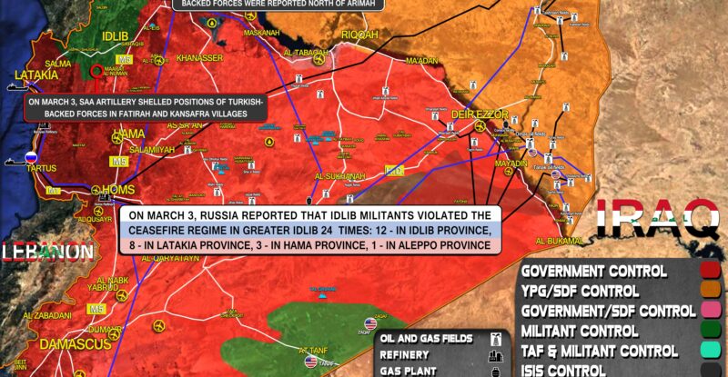 Click to see full-size image On March 3, Russia reported that Idlib militants violated the ceasefire regime in Greater Idlib…
