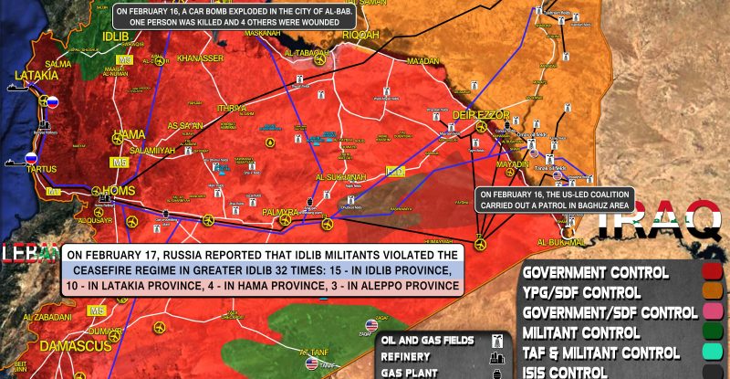 On February 17, Russia reported that Idlib militants violated the ceasefire regime in Greater Idlib 32 times: 15 – in…