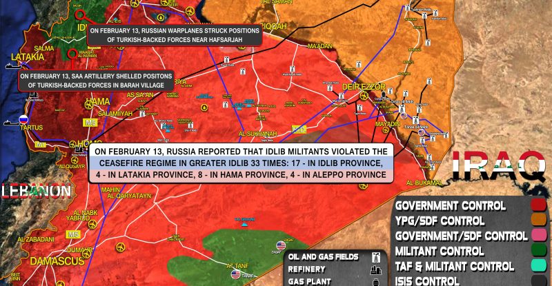 On February 13, Russia reported that Idlib militants violated the ceasefire regime in Greater Idlib 33 times: 17 – in…