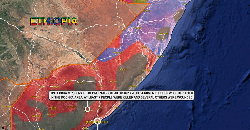 On February 2, clashes between al-Shabab group and government forces were reported in the Doonka area, at least 7 people…