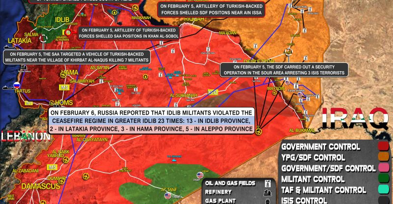On February 6, Russia reported that Idlib militants violated the ceasefire regime in Greater Idlib 23 times: 13 – in…