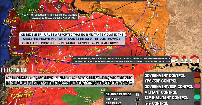 A brief overview of the recent developments: On December 17, Russia reported that Idlib militants violated the ceasefire regime in…