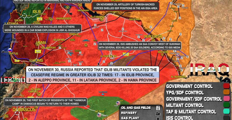 A brief overview of the recent developments in Syria: On November 29, 3 civilians were wounded in an IED explosion…