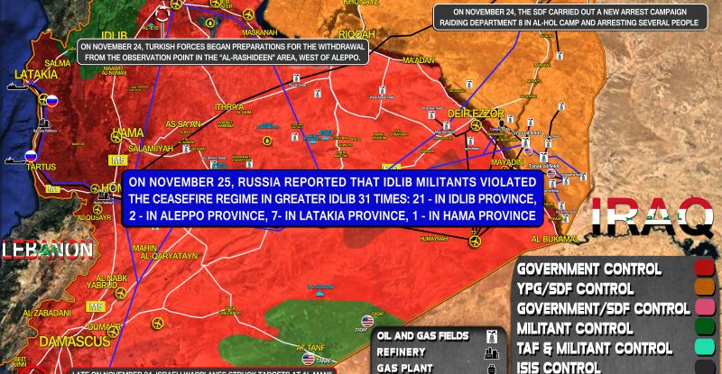 A brief overview of the recent developments in Syria: On November 25, Russia reported that Idlib militants violated the ceasefire…